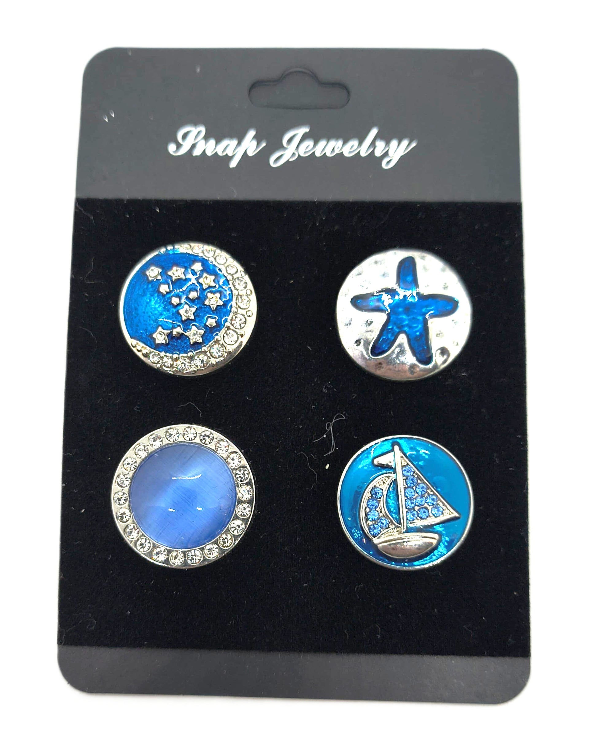 Starfish, moon, cat's eye, sailboat.