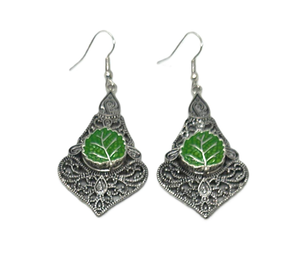 12mm. leaf snaps on Victorian style dangle earrings. 2.5" in length.